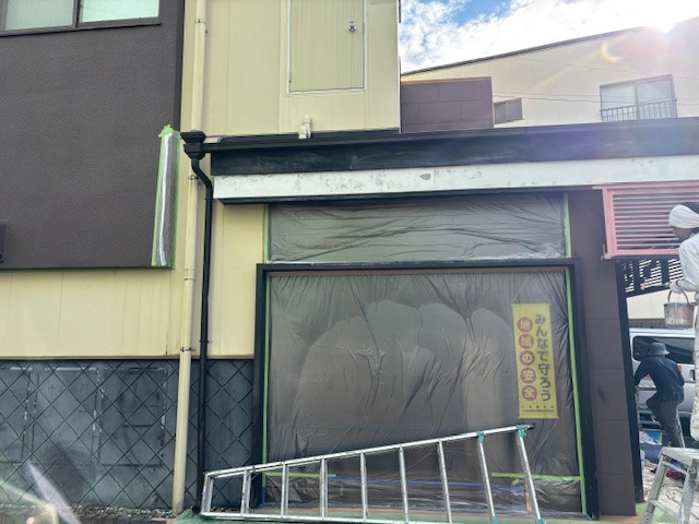 お客様には大変ご迷惑をおかけしますが、店舗外装とメンテナンス工事を行っています。